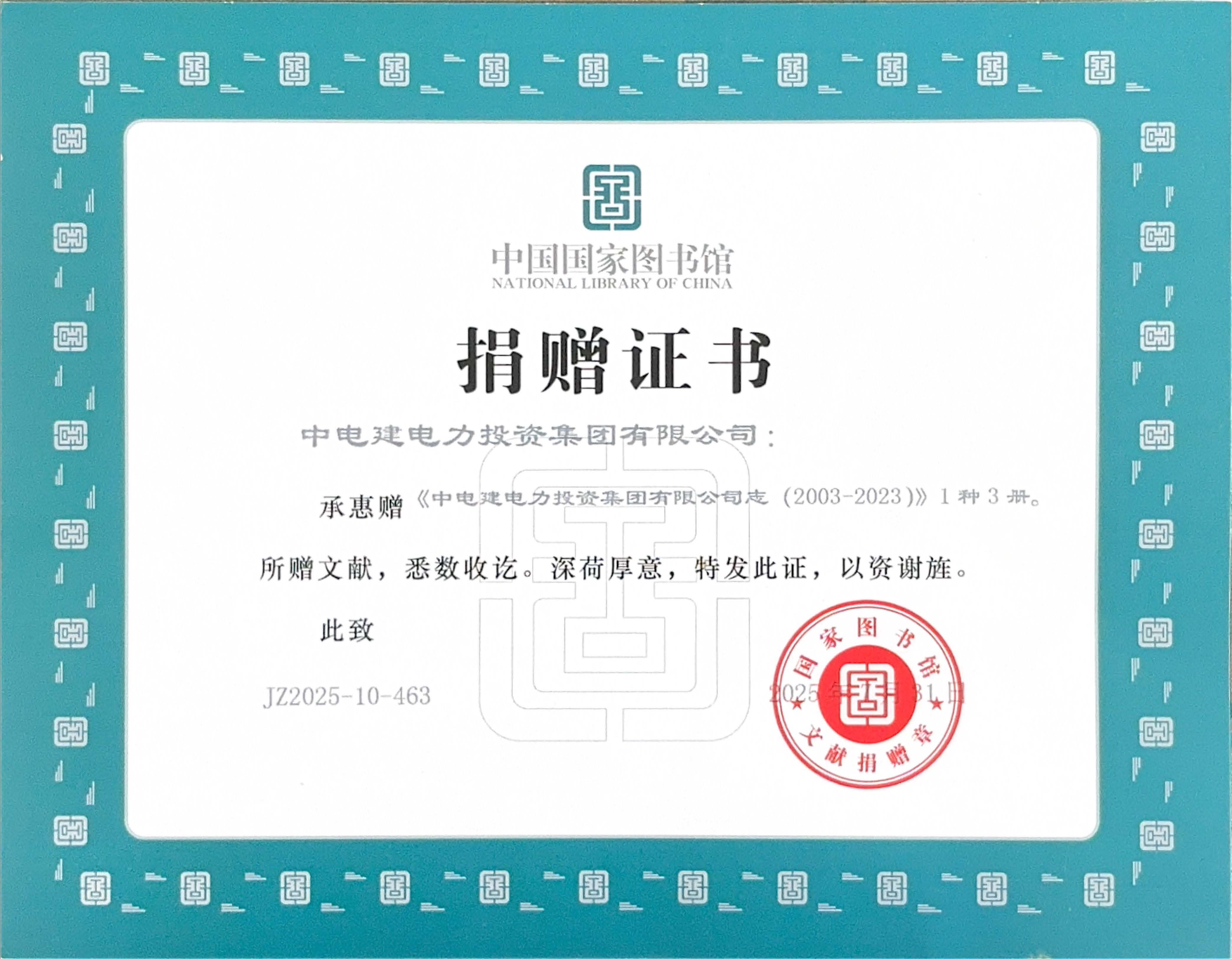 電建電投公司首部志書被中國國家圖書館收藏